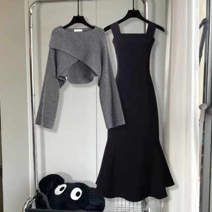 | nameOriginal | Hepburn style autumn and winter wear a suit women 2024 Korean knitted sweater strap fishtail skirt two-piece new |