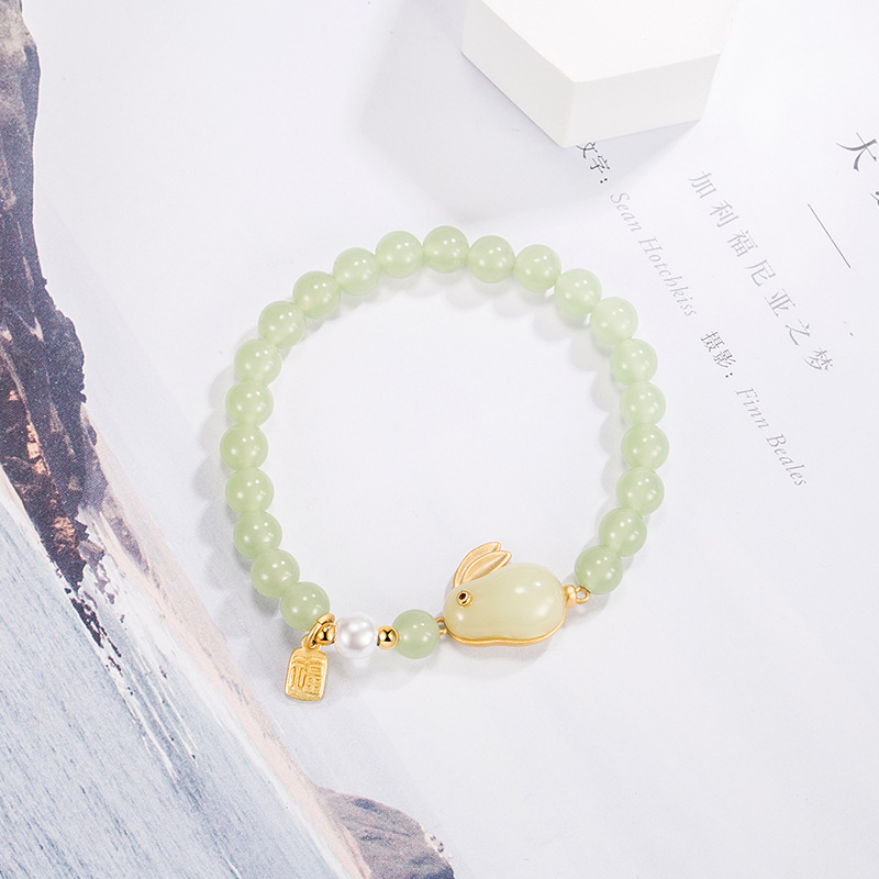 | nameOriginal | Hetian jade rabbit bracelet women's Pearl lucky bracelet zodiac Rabbit year gift 2022 New |