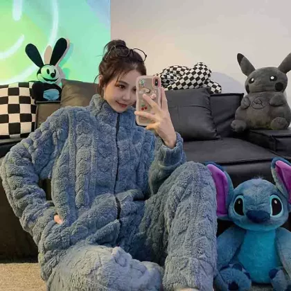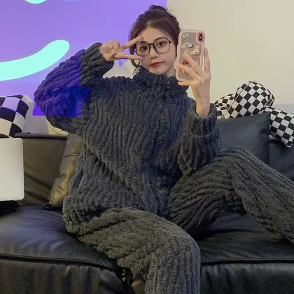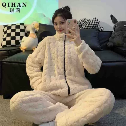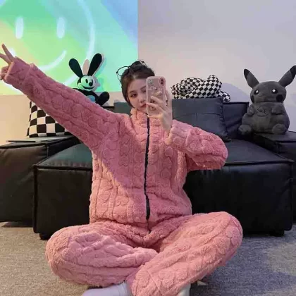 | nameOriginal | High collar zipper casual gray two-piece set of coral velvet pajamas for women winter thickened and velvet 2024 new internet celebrity |