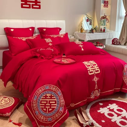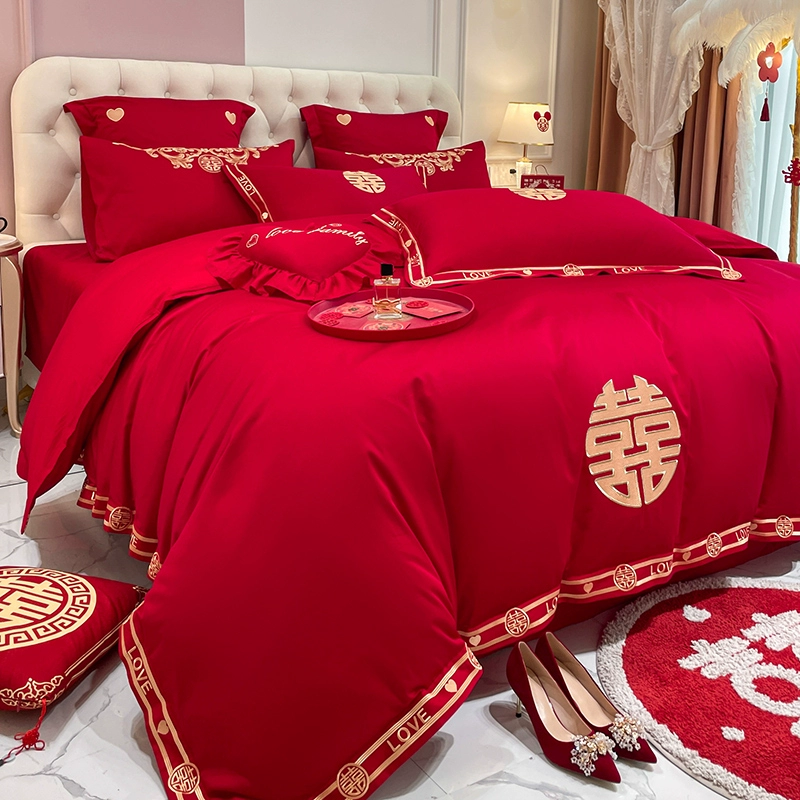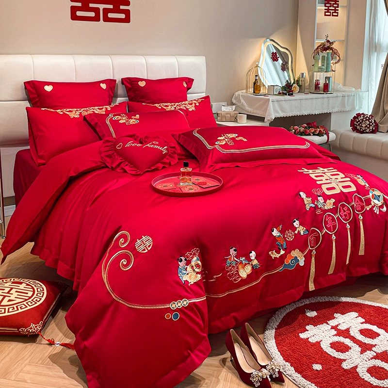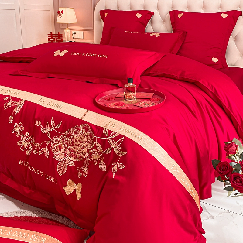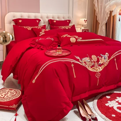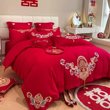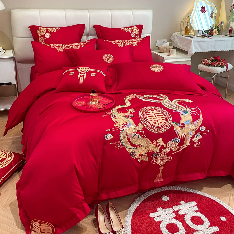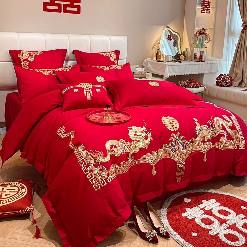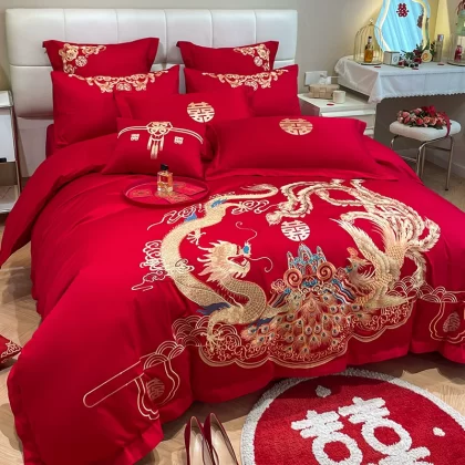 High-end Chinese dragon and phoenix red bed sheets set of four