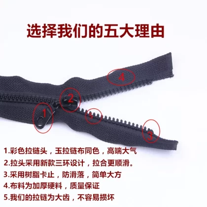 High-end down jacket zipper top clothes jacket No. 5 resin zipper open tail long zipper lock zipper accessories