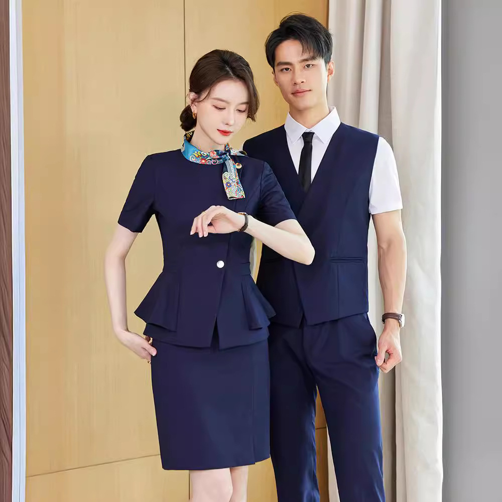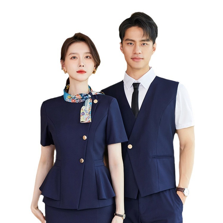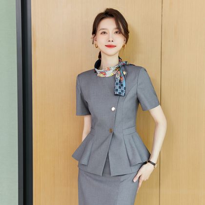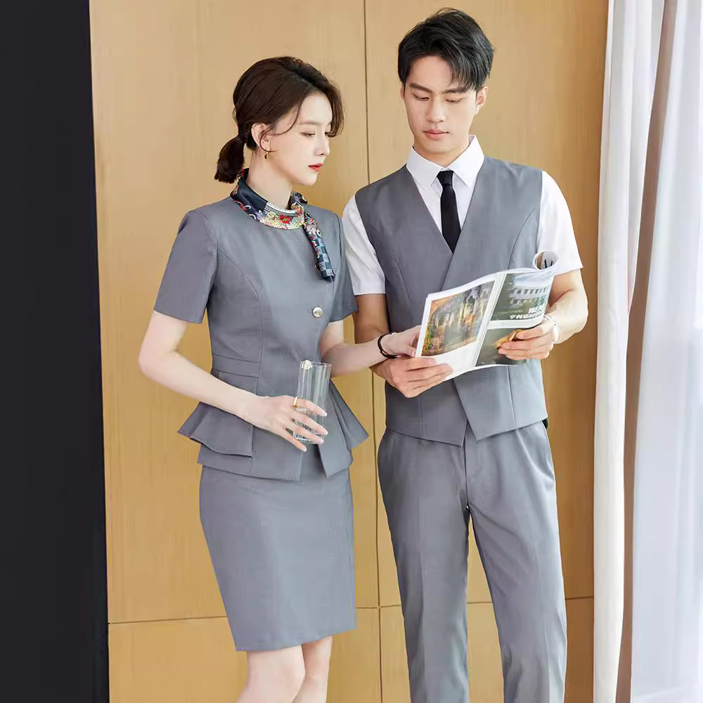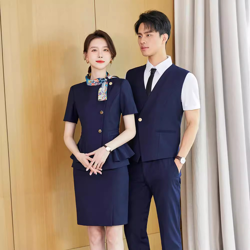 High-end Fashion Jewelry Store Work Clothes Women's Suit Ruffled Belly Covering Two-piece Professional Men's and Women's suit