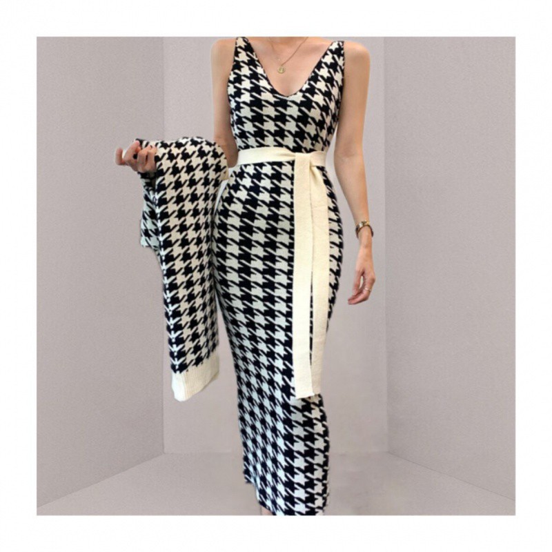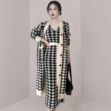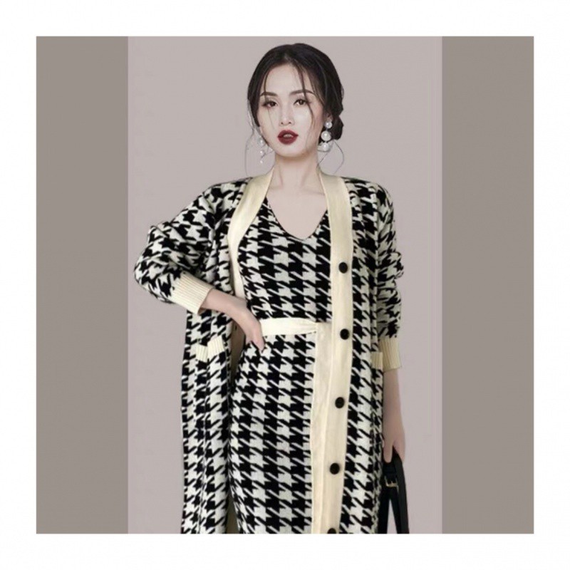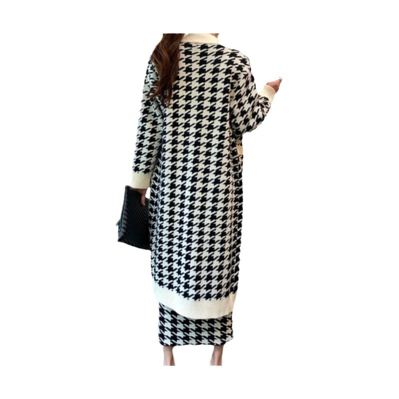 | nameOriginal | High-end fashionable long knitted two-piece cross-border women's clothing Spring and Autumn New sweater coat + hip-wrapped knitted skirt |