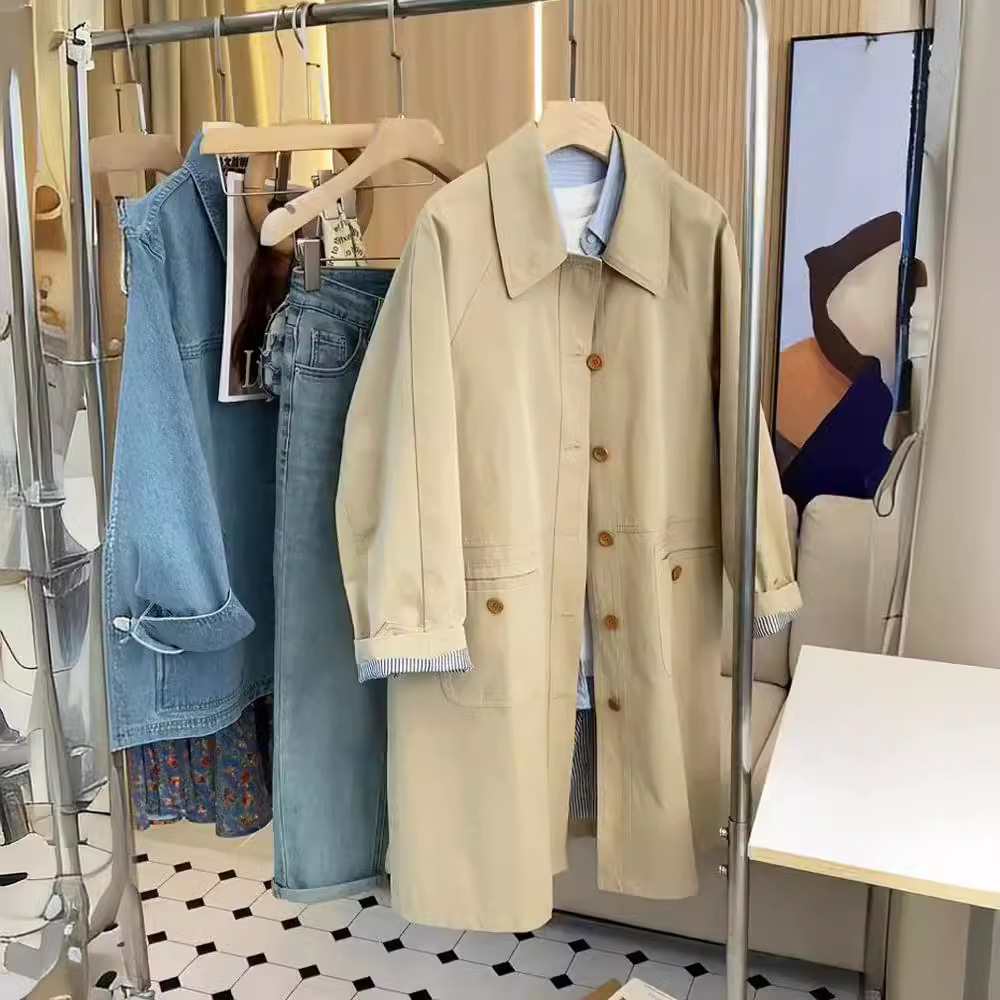 High-end feeling super good-looking Korean style short long khaki trench coat women's 2024 new early spring