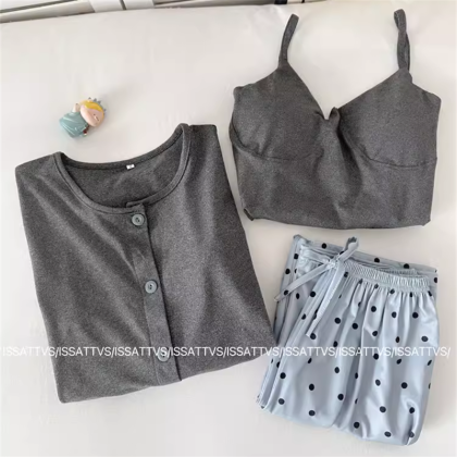 High-end gray women's spring and summer pure cotton home wear suspenders