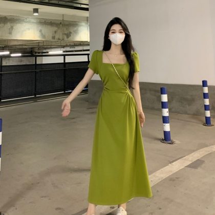 | nameOriginal | High-end green summer pear-shaped dress |