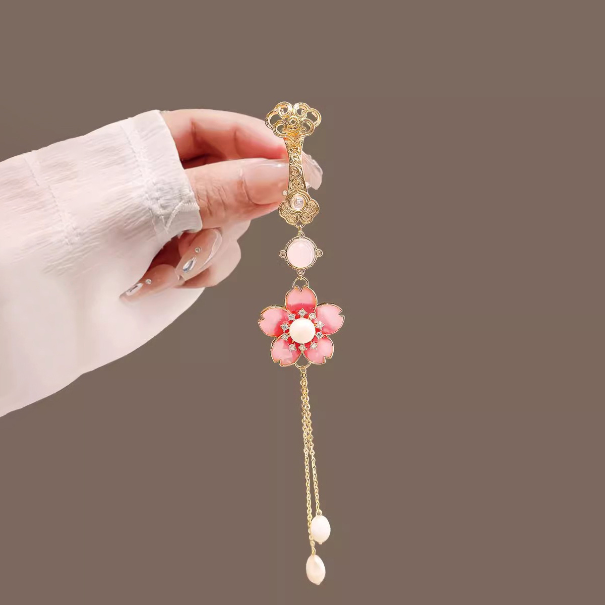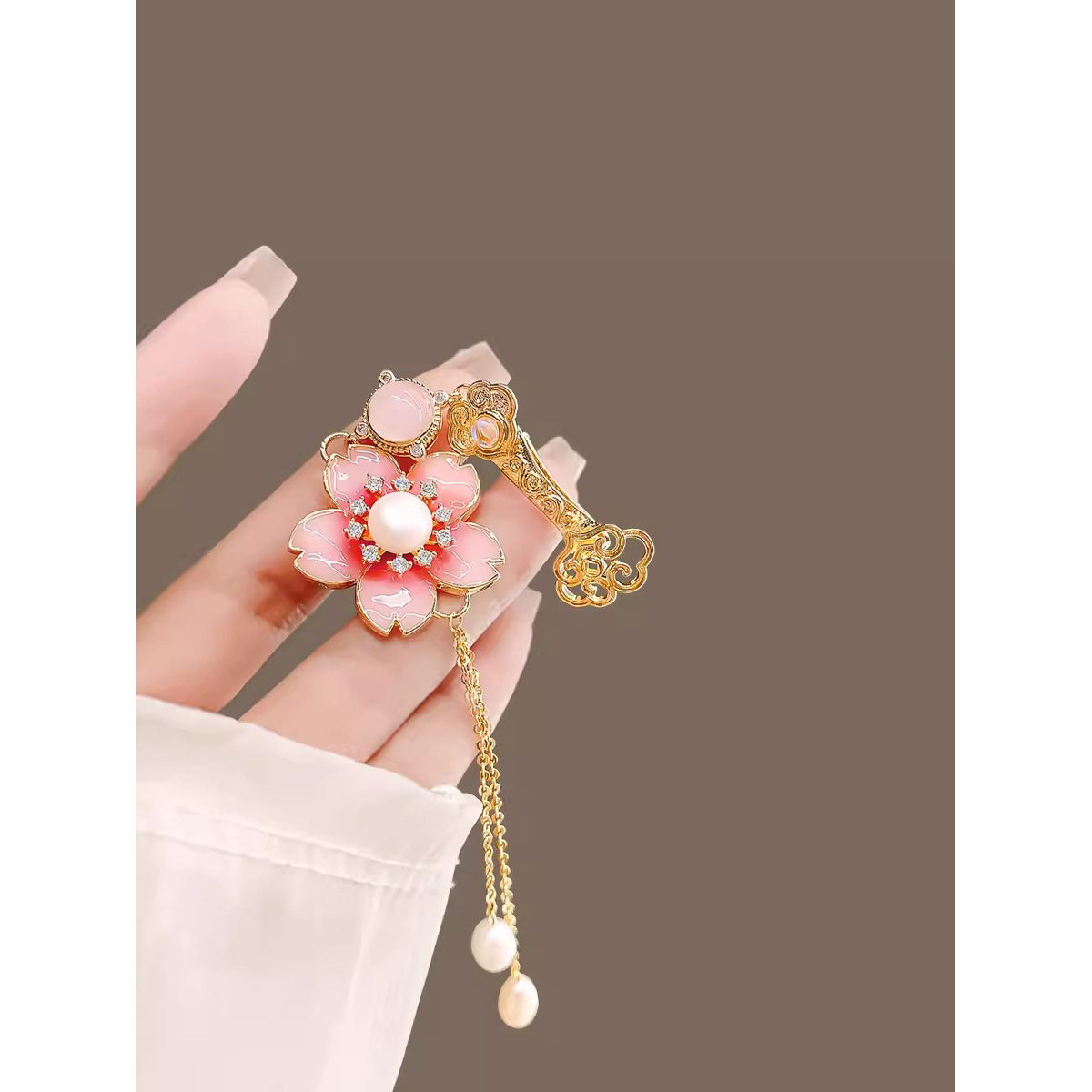 | nameOriginal | High-end jade Ruyi flower tassel cheongsam placket pendant female tassel Hanfu forbidden step exquisite corsage tea clothing accessories |