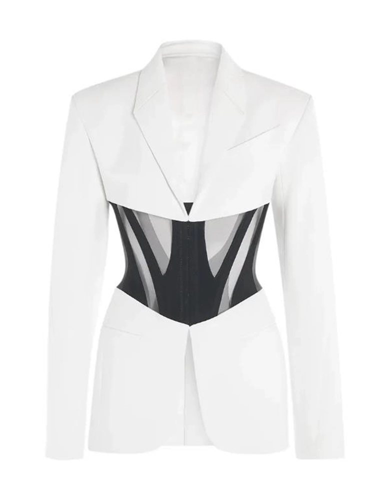 | nameOriginal | High-end micro-perspective fishbone waist mesh splicing suit jacket mugler black hook button shoulder pad small suit |