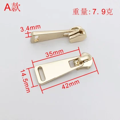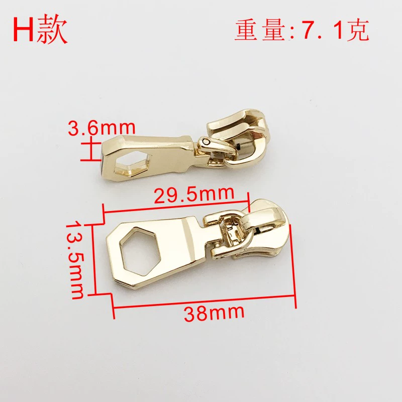 | nameOriginal | High-end No. 5 metal zipper zipper for bag and bag zipper accessories, zipper head, light gold movable pull tab, detachable |