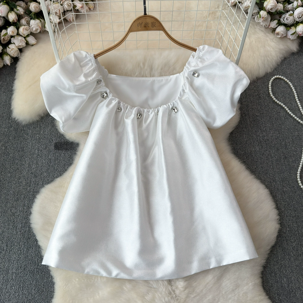 | nameOriginal | High-end palace-style babydoll shirt for women, heavy industry diamond-studded one-line collar, off-shoulder puff sleeves, loose and slim new top |