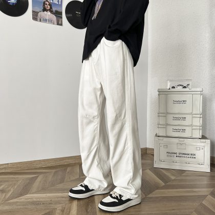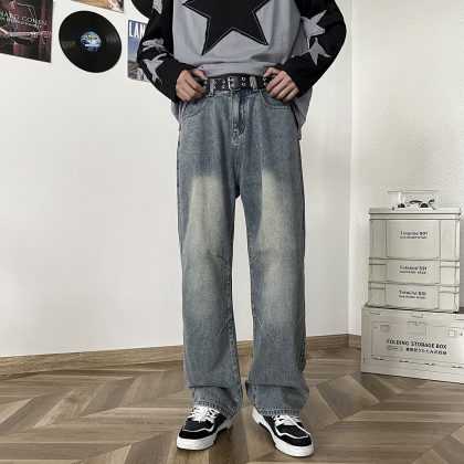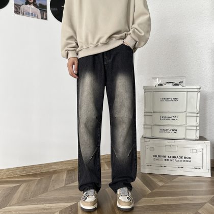 | nameOriginal | High-end retro distressed washed jeans men's autumn and winter New White loose straight jeans men's trousers |