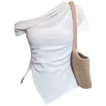 High-end slanted collar design slit short-sleeved shirt for women, summer chic off-shoulder waist slimming top