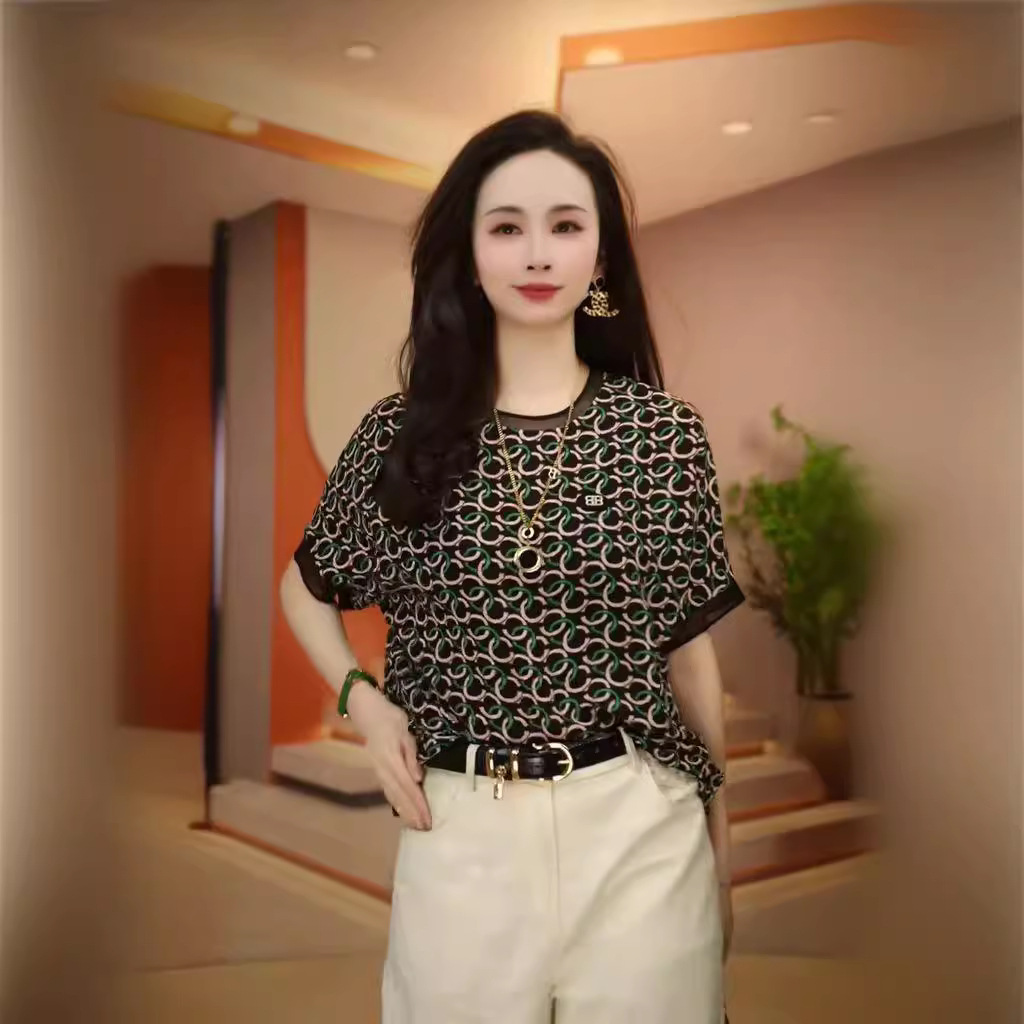 | nameOriginal | High-end Summer New Women's Summer T-shirt Light Luxury Fashion Mom Loose Printed Top |