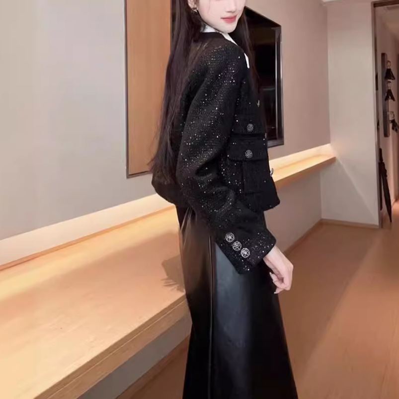 | nameOriginal | High-end super nice black gold style coat 2024 New early spring fashion small temperament short top |