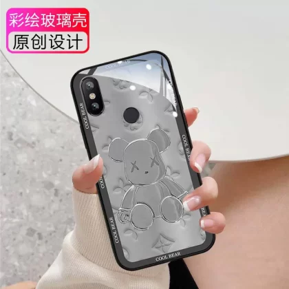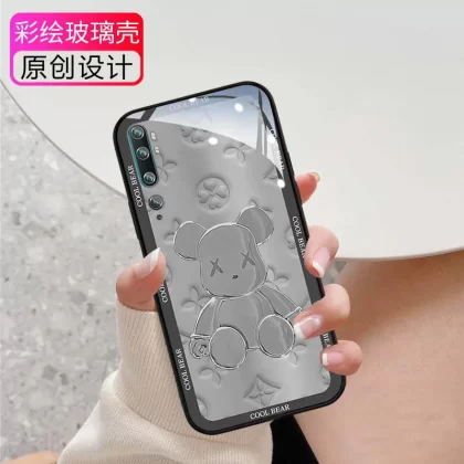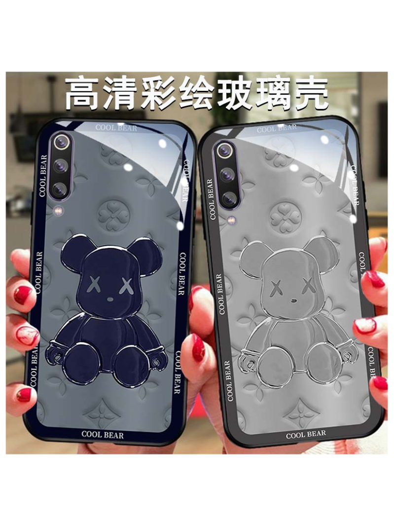 High-end violent bear suitable for Xiaomi 9 mobile phone case CC9pro men and women new 8 personality Internet celebrity silicone anti-fall 6X lens mix4 all-inclusive mix3 tempered glass mix2s protection 9se set