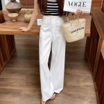 الراقية الجينز الأبيض المرأة الصيف 2024 موضة جديدة الحد الأدنى عالية الخصر مستقيم فضفاض بنطال ذو قصة أرجل واسعة داينغ بنطلون