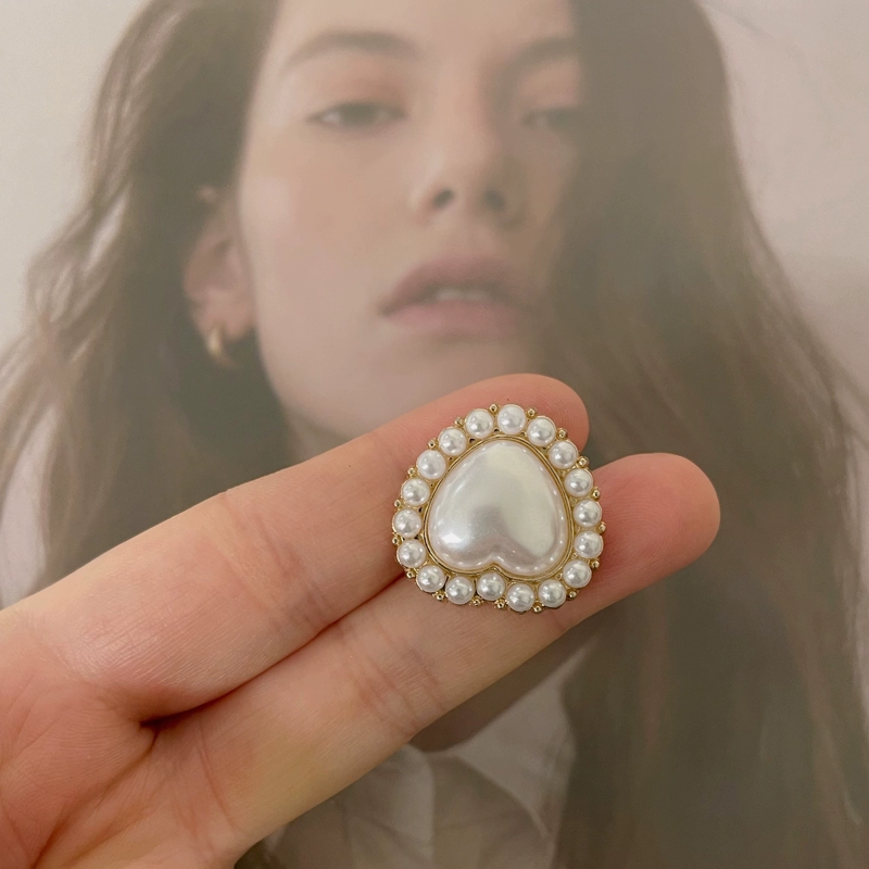 High-end white pearl rhinestone flower-shaped button sweater cardigan suit fur coat decorative button round diamond button