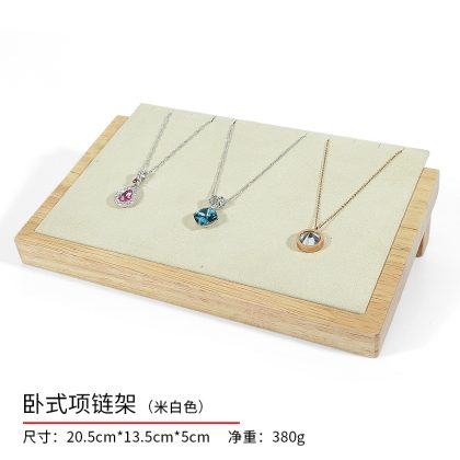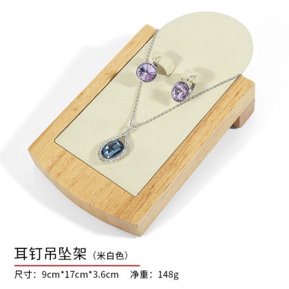 High-grade bamboo wood rice velvet necklace jewelry display props set Jade window jewelry display tray