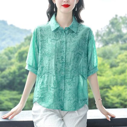 | nameOriginal | High-grade Cotton Linen Shirt Women's Summer New Fashionable Short-sleeved Elegant Casual Shirt Loose Slim Belly Covering Shirt |