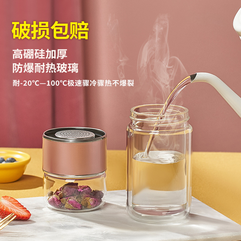 High-grade double-layer heat-insulated tea-water separation glass for men's and women's office portable tea cup with logo lettering