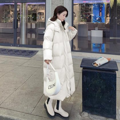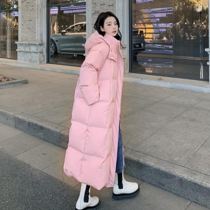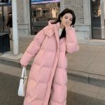 High-grade fried street pink down jacket for women 2023 new over-the-knee long slimming non-fat winter thickened coat