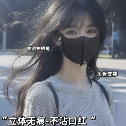 فتاة جميلة مع قناع حماية شمس الحرير الجليدية