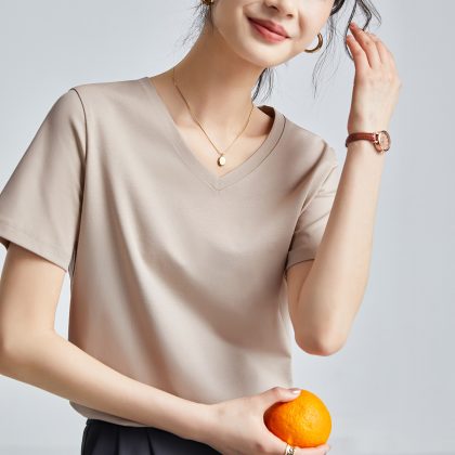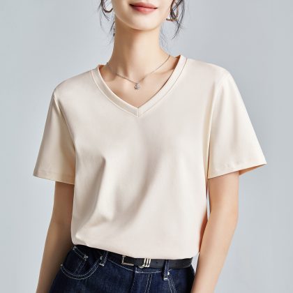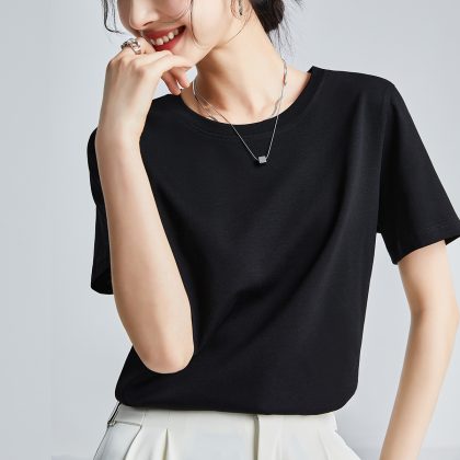 | nameOriginal | high quality Mercerized Cotton T-shirt Women's Short-sleeved 2024 New Loose Inner Wearing Round Neck Liquid Ammonia T-shirt Base Shirt |