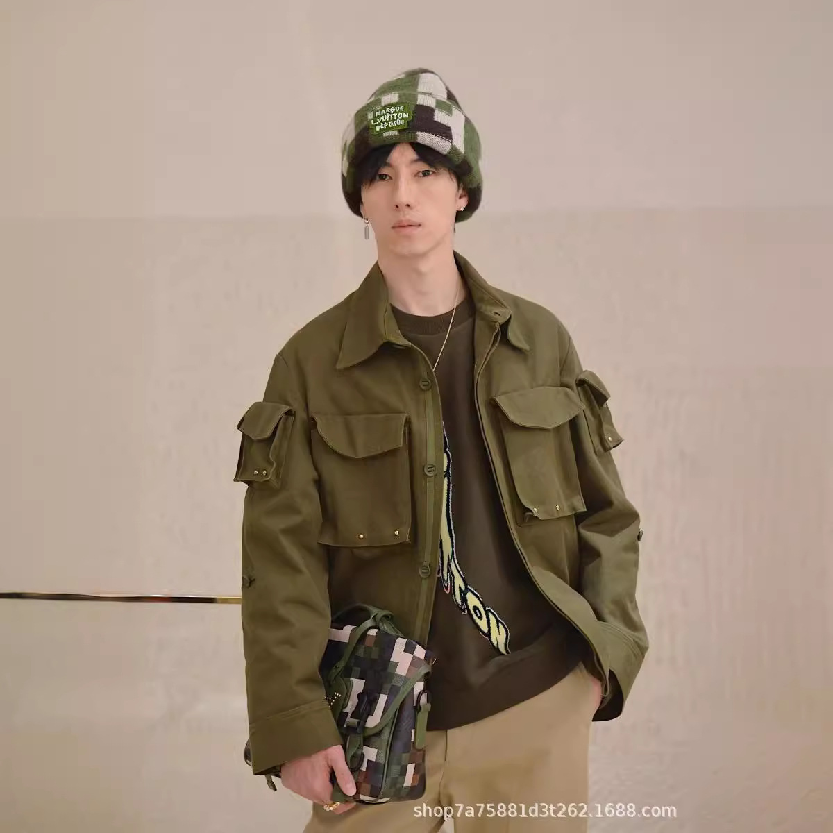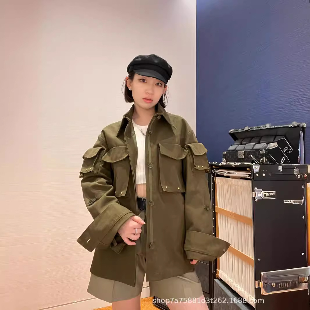 High version 24 early spring tide brand new joint series casual shirt coat rivet letter tooling style multi-pocket