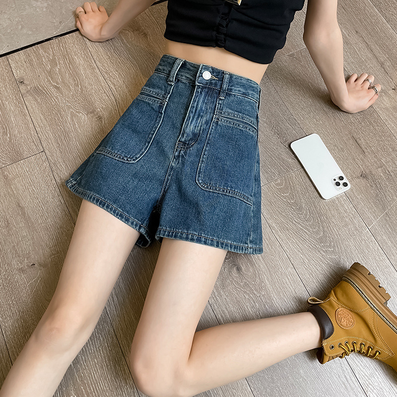 High Waist A- line Short Hot Pants Women's Summer Thin Retro High Waist Slimming Large Size 2023 New Denim Short Pants