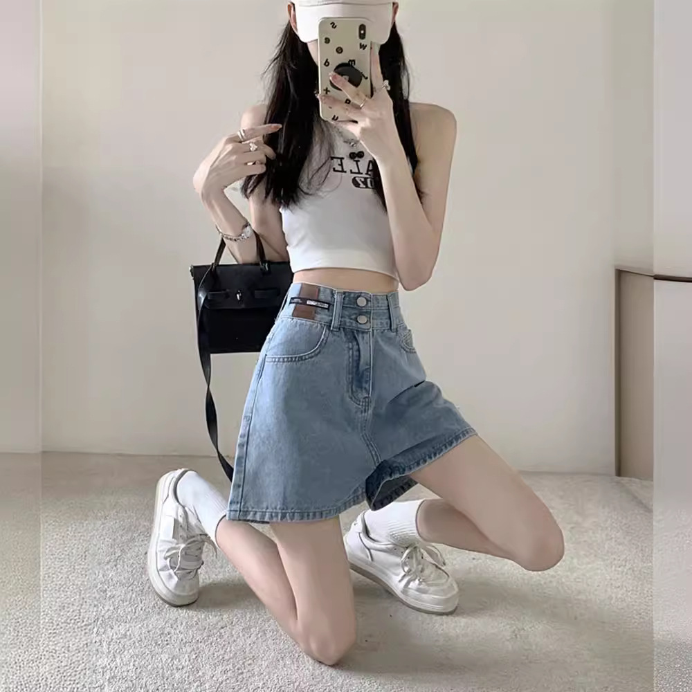 | nameOriginal | High Waist Denim Shorts Women's Summer Thin 2024 New plus size chubby girl Slimming Small A- shaped Wide-leg Hot Pants |