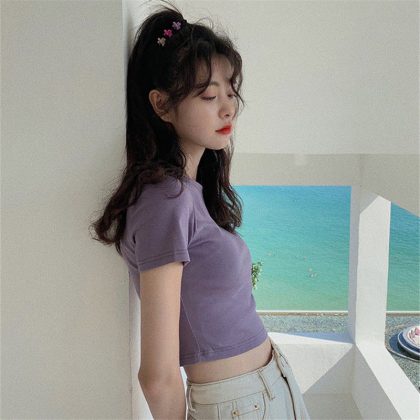 | nameOriginal | High waist exposed navel student short sleeve T-shirt women's 2022 new short Korean style slim Hyuna college style top ins fashion |