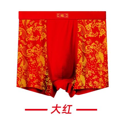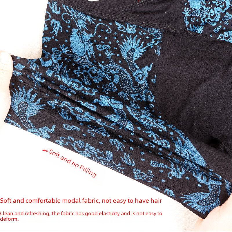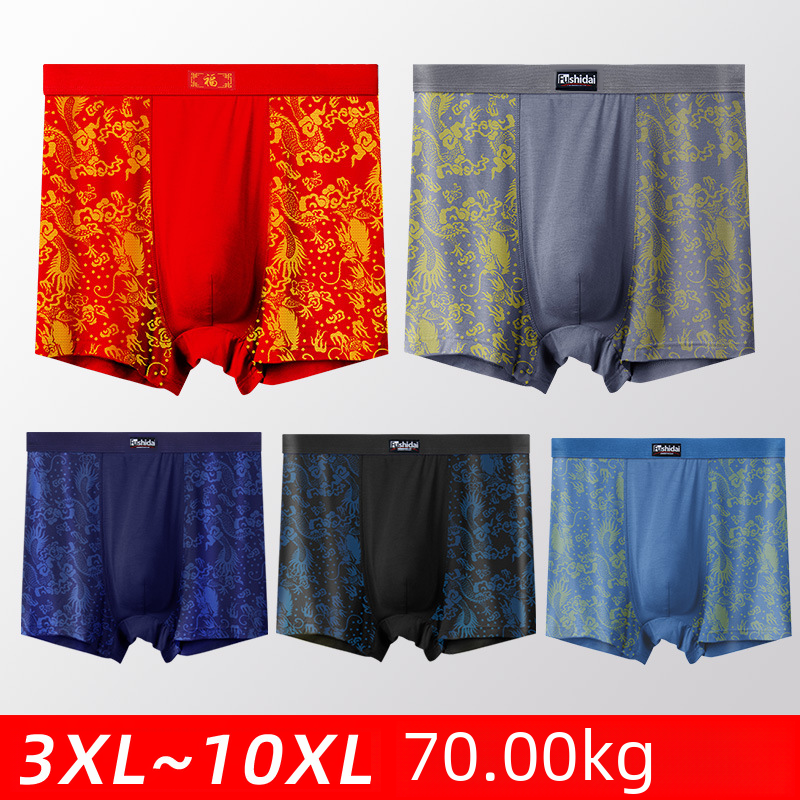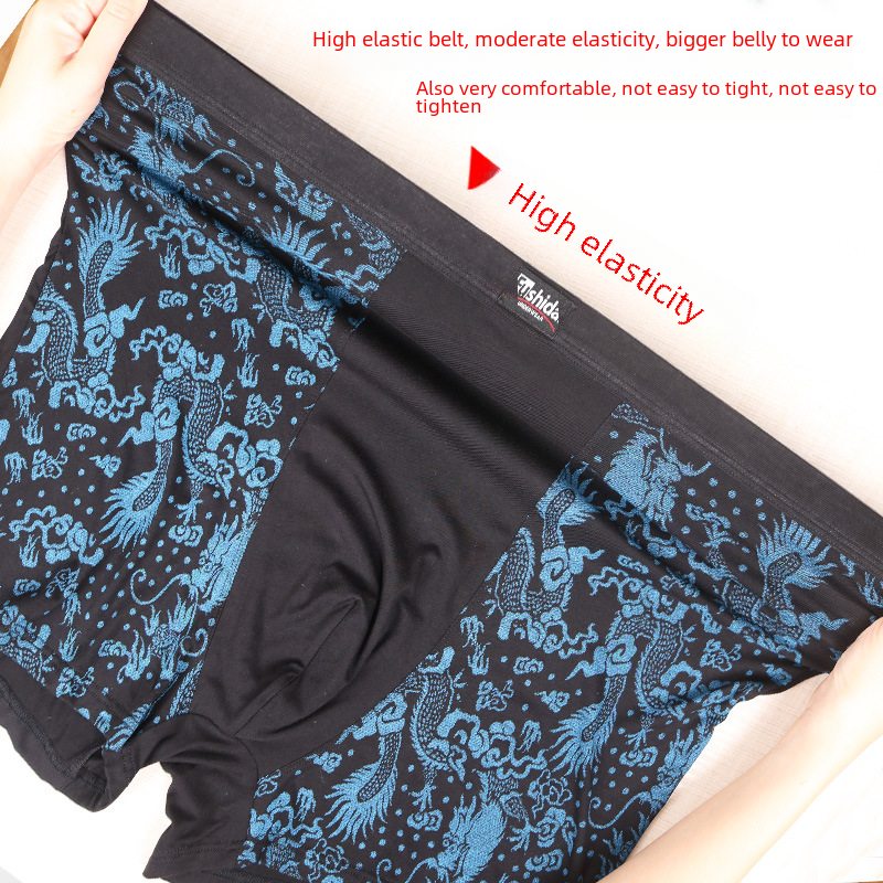 High waist large size men's boxer underwear fat man modal wide belt dragon pattern 300kg fat man printed Four Corners
