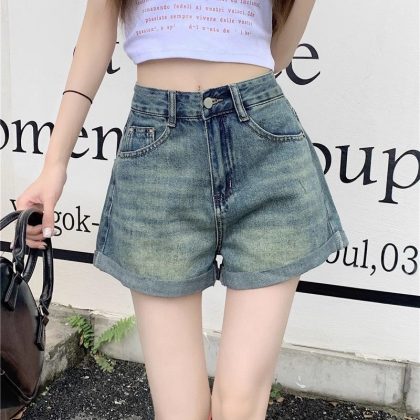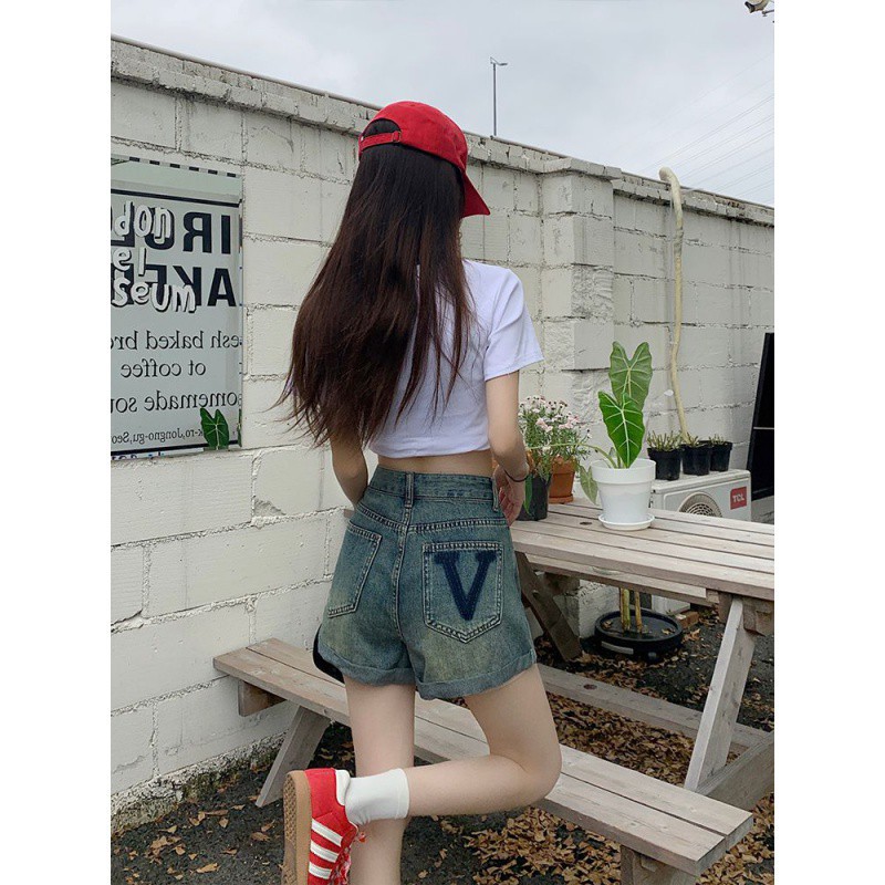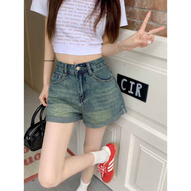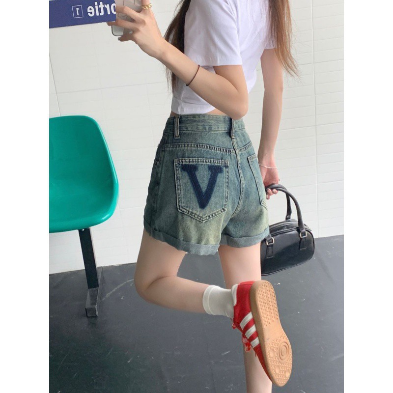 High Waist Letter Curl Jeans Women's 2024 Summer New Design Sense Retro Straight Leg Wide Leg Pants Shorts Pants