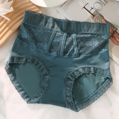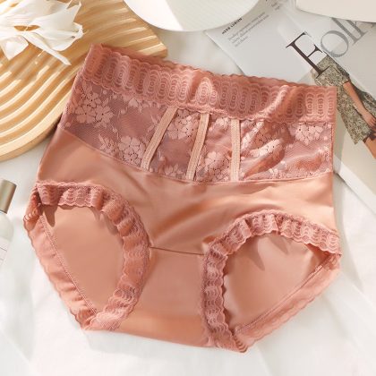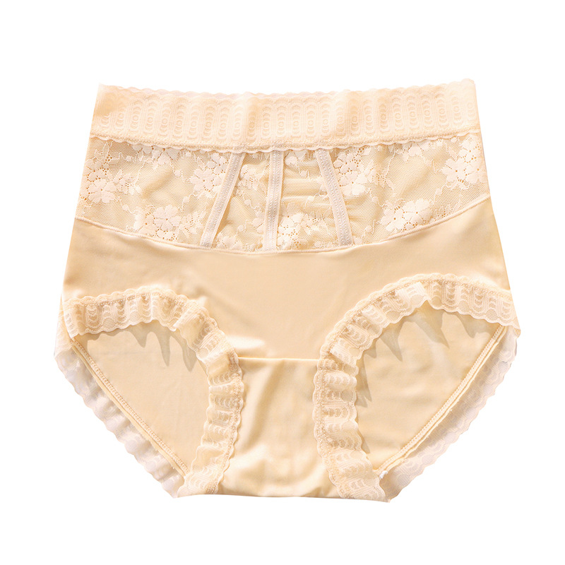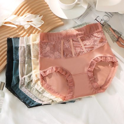| nameOriginal | High waist satin retro all-match hollow lace stitching pure cotton silk antibacterial crotch plus size women's briefs |