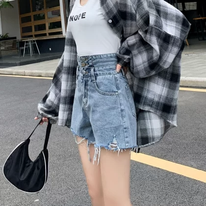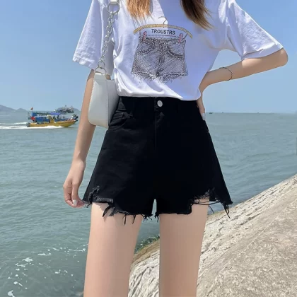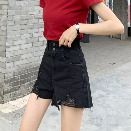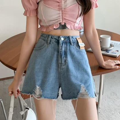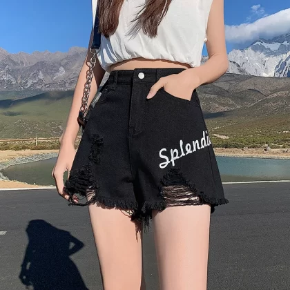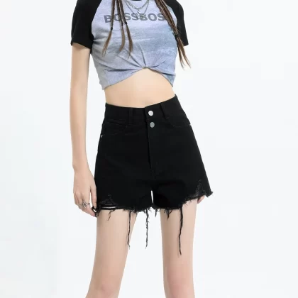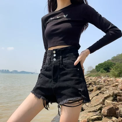 | nameOriginal | High waist tummy control ripped denim shorts with sweet and spicy outer wear |
