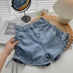 | nameOriginal | High Waist Wide Leg Denim Shorts Women's 2024 Summer New Arrival Drawstring Stretch A- Line Pants Strap Tight Hot Pants |