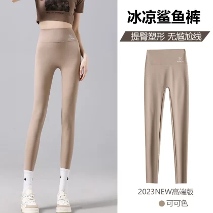 High-waisted shark pants for women's outer wear summer thin leggings for small people 89 points to tighten the belly and lift the buttocks yoga Barbie pants