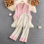 | nameOriginal | High-waisted slimming color-blocked V-neck cardigan jacket and knitted pants |