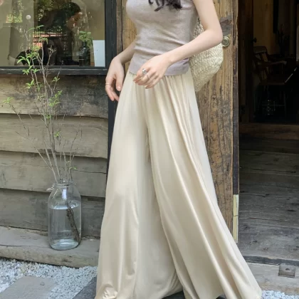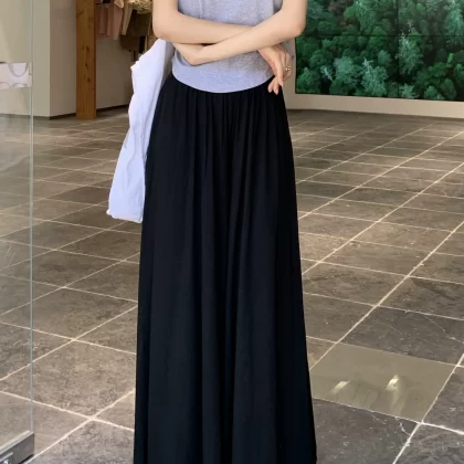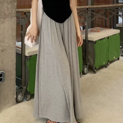 بنطال كاجوال ربيعي عالي الخصر بلون سادة