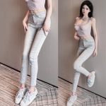 High-waisted stretch cross slim-fit light gray supermodel pants