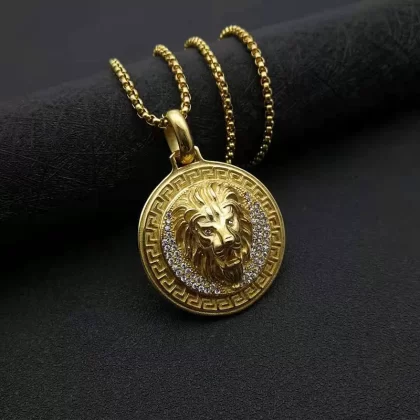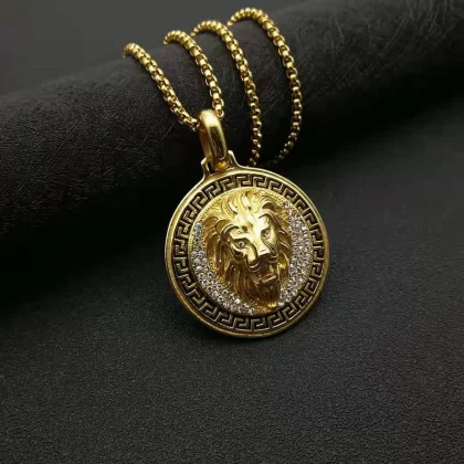 | nameOriginal | Hip Hop Titanium Steel Gold Plated Disc Lion Head Pendant Necklace |