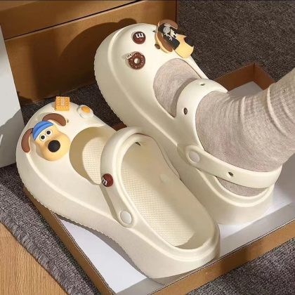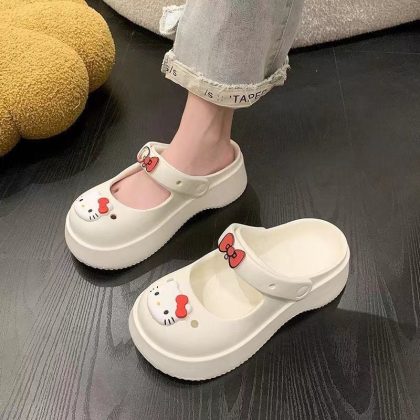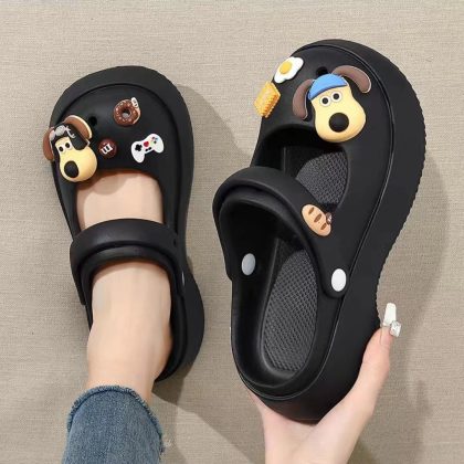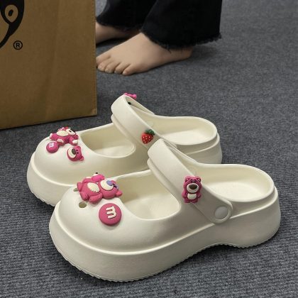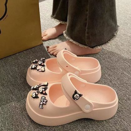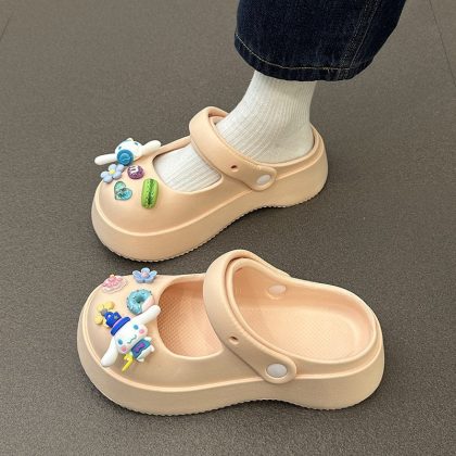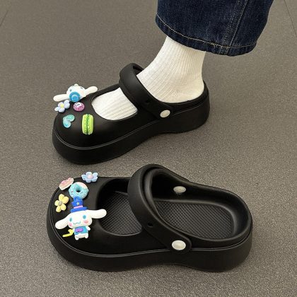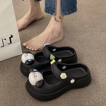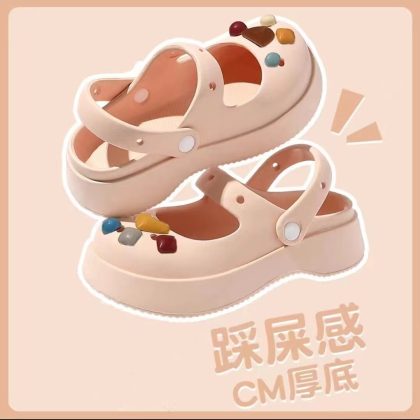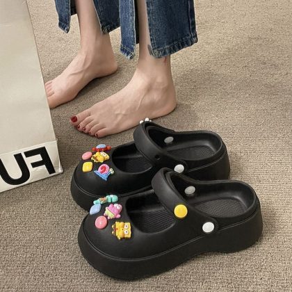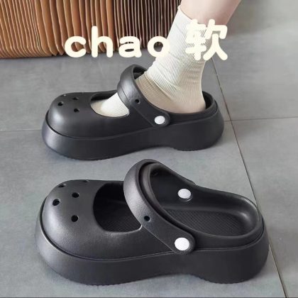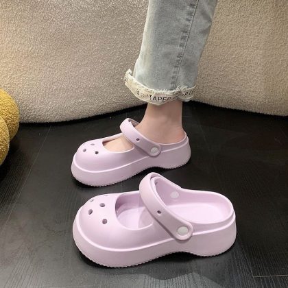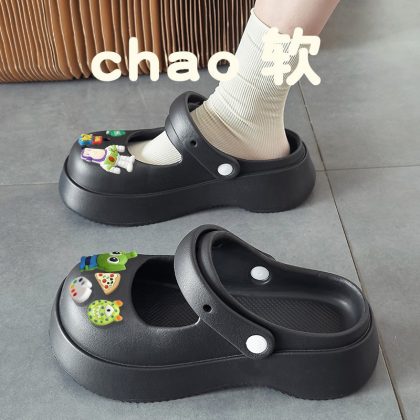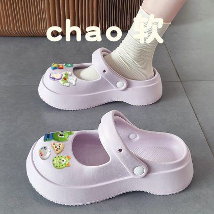 Hole Shoes Women's Outwear French-style Mary Jane Non-slip Soft-soled Ins Sandals and Slippers Home Half Slippers for Lazy Women