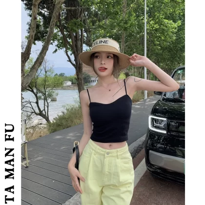 Hollow beautiful back black camisole for women 2024 new sexy inner tube top with breast pad hot girl outfit top