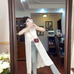 Hollow layered ins thin vest slit long skirt