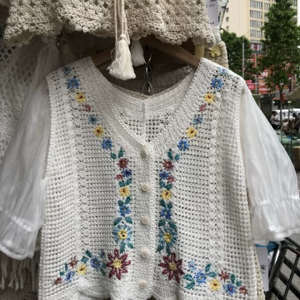 | nameOriginal | Hollow out sweet age-reducing puff sleeve shirt with flower embroidery |