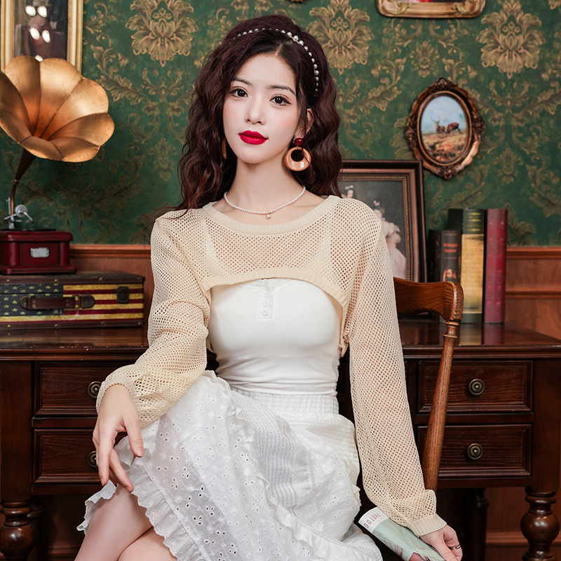Hollow Small Shawl Coat Women's Summer 2024 New All-match Thin Sunscreen Short Pullover Knitted Top