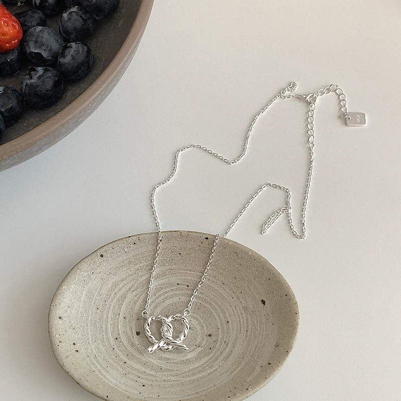 | nameOriginal | Hollow Twist Love Pendant Necklace Women's Simple Cold Style Rope Knot S925 Silver Clavicle Chain Open Ring |