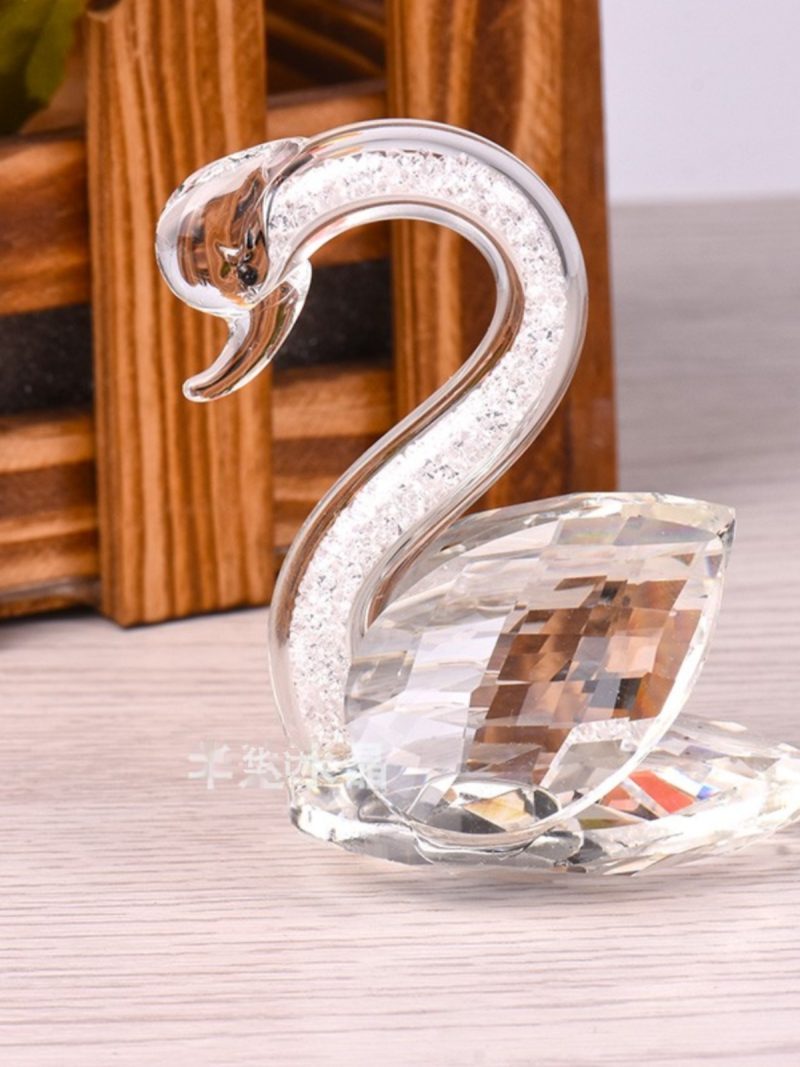 بجعة كريستالية لتزيين المنزل مع الماس بالداخل، هدية إبداعية راقية للأطفال، زينة لتزيين غرفة المعيشة على شكل حيوانات صغيرة