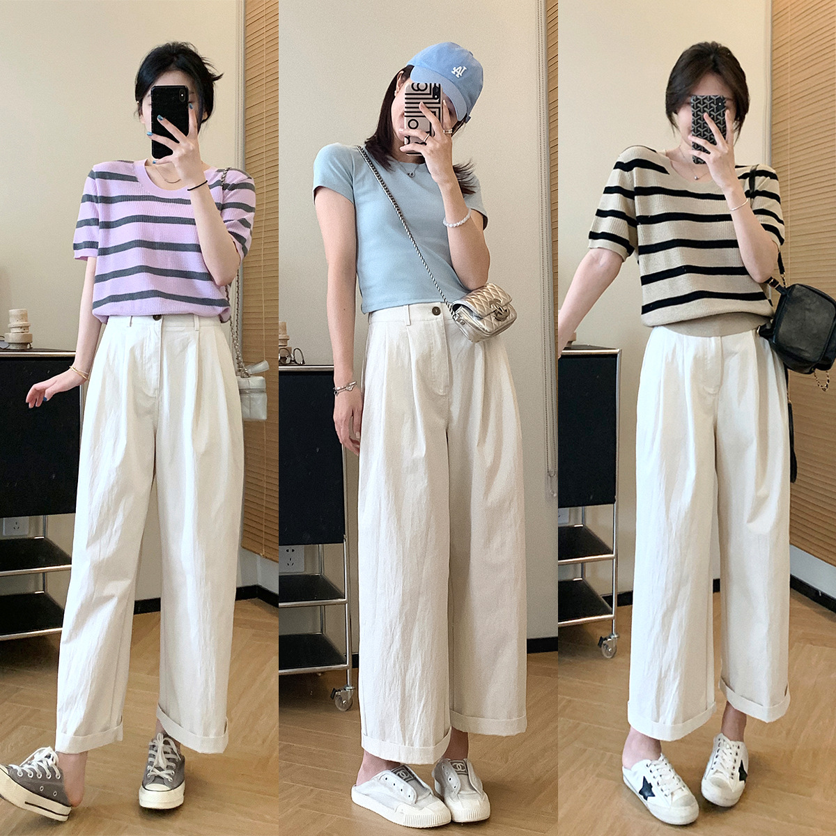 homemade tofu pants! Women's High-Woven High-Density Wash Cotton Hip-Covering Straight Pants Summer Loose Thin Casual Pants