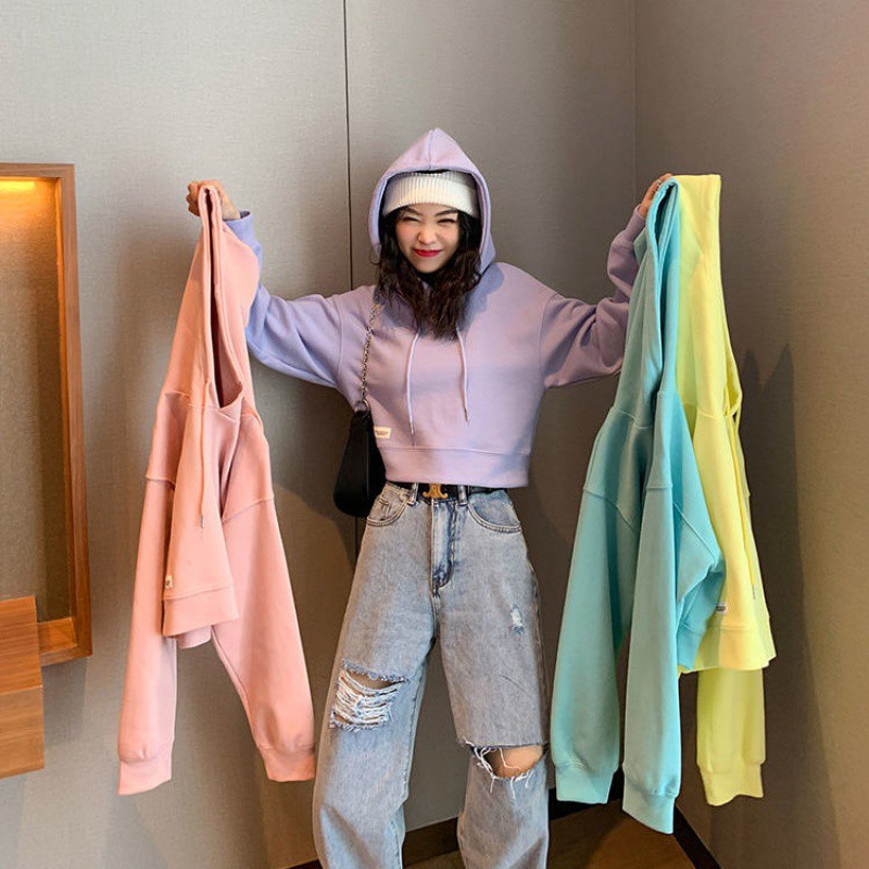 | nameOriginal | Hong Kong-style Candy-colored Hooded Sweatshirt Women's Short 2024 New Spring and Autumn Solid Color Pullover Jacket Ins Trendy |